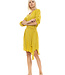 Effenkleurige gele jurk met mouwen die worden geplooid met knopen en een riem die in de taille kan worden gestrikt. Lees meer..