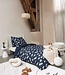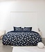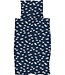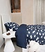 Dekbedovertrek met witte schaapjesprint op een donkerblauwe achterkant. Gemaakt in Portugal van 100% biologisch katoen.