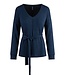 De set bestaat uit een top met een V-hals en een trekkoord in de taille, voor een speelse touch. De broek heeft rechte pijpen en een elastische tailleband voor een comfortabele pasvorm.