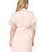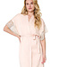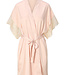 Beautiful in Beige! Deze satijnen kimono valt erg soepel en heeft mooie kanten details langs de mouwen. De kimono kan met een ceintuur om het middel dicht worden gedragen.