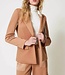 Blazer van scubastof met afneembare capuchon van satijn bevestigd met knopen, revers, sluiting met één knoop. Broek apart verkrijgbaar Lees meer..