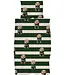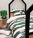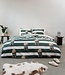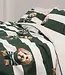 Dekbedovertrek met een groen/beige streeppatroon & labradoodle print. Gemaakt in Portugal van 100% biologisch katoen