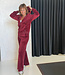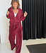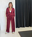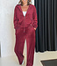 Jasje met ritssluiting en capuchon geeft iets sportief, terwijl de zachte glans van de bordeaurode stof zorgt voor een comfortabele touch. De broek heeft een elastische tailleband met lint voor de perfecte pasvorm en rechte pijpen die zorgen voor een flatterend silhouet.