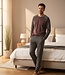 Herenpyjama met fijn gestreept binnenvlak. Met elastische bootd aan de broek
