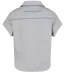 De gegradeerde blauwe details werken geweldig op de zachtgrijze stof.