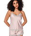 Perfect Basic! Deze satijnen set bestaat uit een spaghetti top met mooie kanten details langs de hals en onderaan. De top heeft verstelbare bandjes. De bijbehorende short heeft kanten details onderaan. De elastieken bord zorgt voor een comfortabele fit. Lees meer..